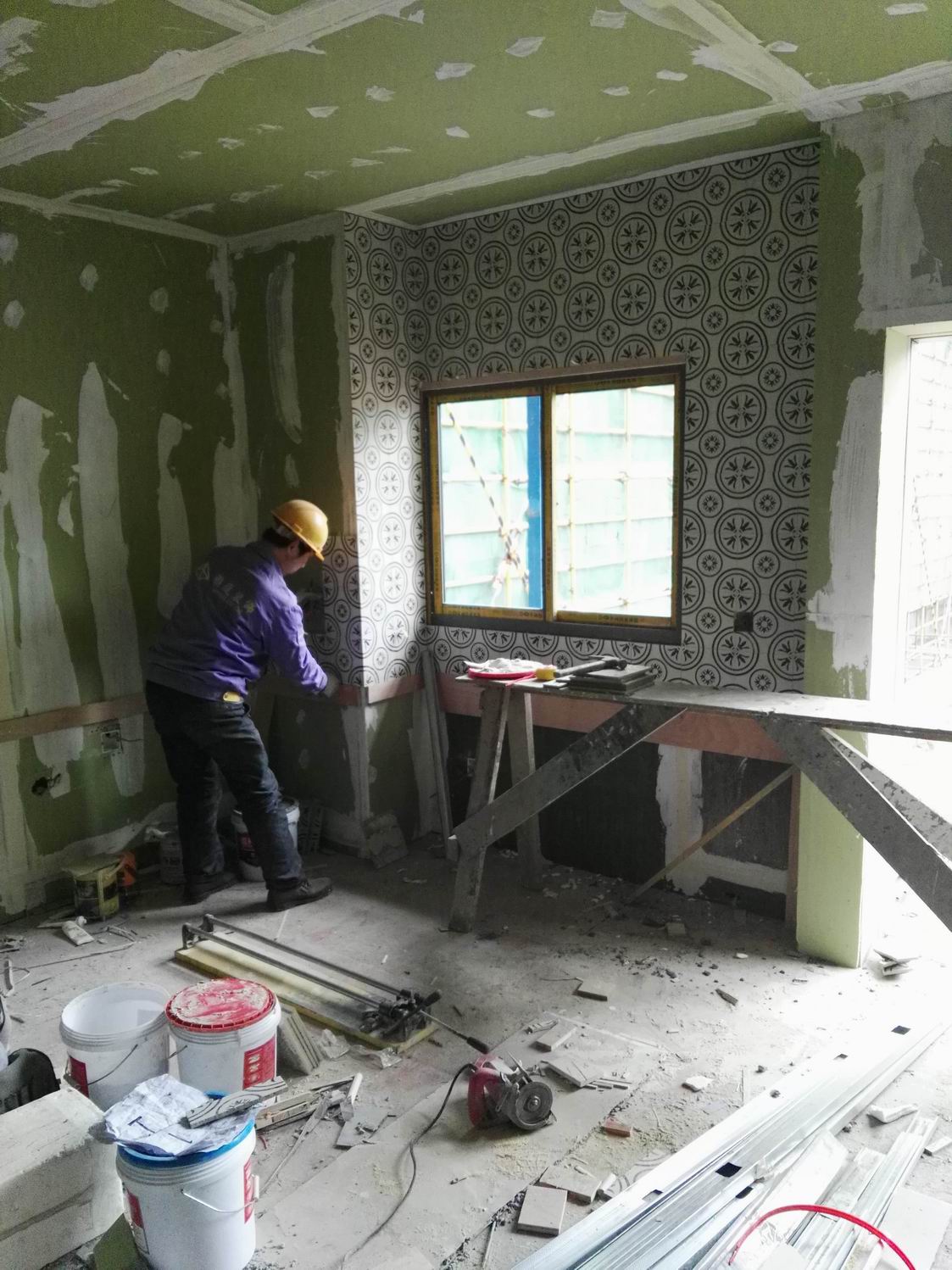 砌筑轻钢龙骨石膏板隔墙、粘贴墙砖