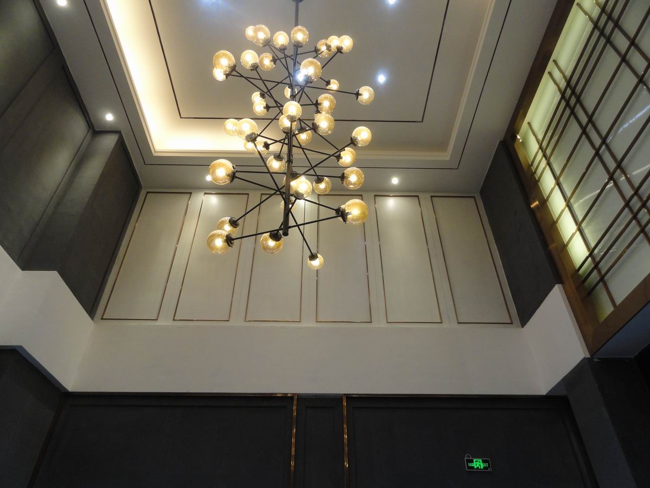 一套营销中心、两套样板间,30个日历天。然而现场施工条件比我们预想的还要恶劣,经常出现停电等系列问题,施工人员被迫停下手中工作,解决电路问题;刚做好的吊顶,因总包漏水问题,在赶工的情况下重新调动人员进行修补;原施工完成的作业面,为配合其他施工单位工作进行拆除和二次施工;根据甲方对外展示需求及装饰效果,施工过程中多次出现施工方案及材质更改;部分原图纸未标注施工区域,因甲方现场展示效果及功能需要,增加工程量;样板间临时建设,需进行钢结构搭建、楼梯焊接、外立面彩钢板搭建后再进行砌筑轻钢龙骨石膏板隔墙、粘贴墙砖等一系列室内装饰工作。不利的现场条件、多项设计变更、增补的工程量,使原定于30天交付工期,变得更加的紧张。
