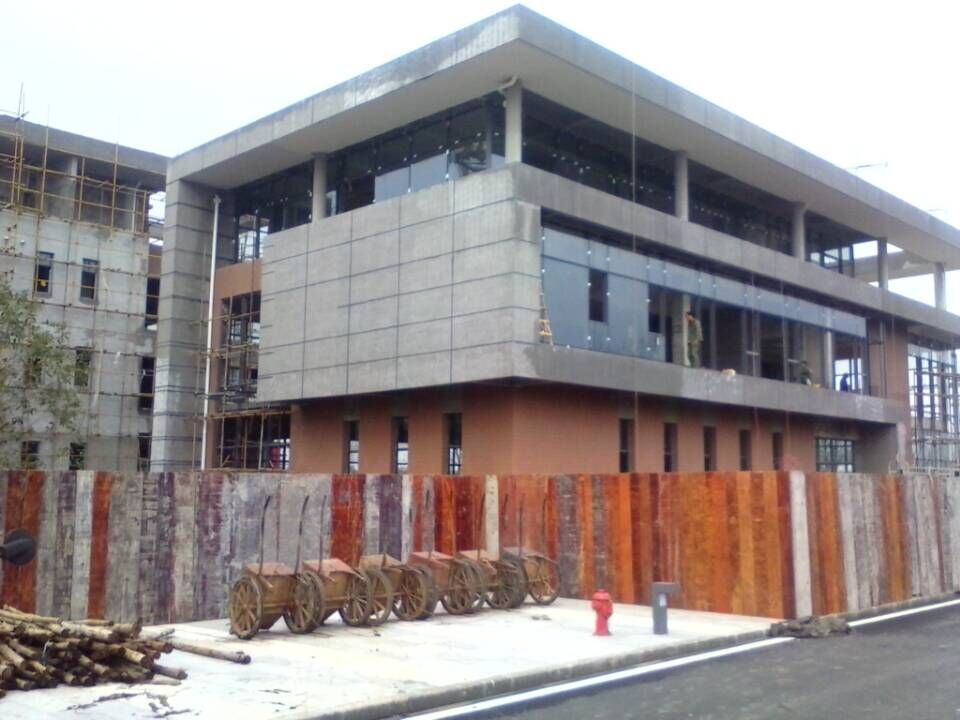 荔枝面多彩是好来屋继完成卧龙·墨水湖边大型平面多彩项目后,又一大型荔枝面多彩涂料项目。荔枝面多彩较平面多彩来说,其仿石材度更为逼真。采用真石漆及液态花岗岩双重施工工艺,视觉上可以以假乱真,达到巧夺天工、胜过天然效果。同时,多彩涂料属于水性产品,无任何溶剂,其环保性极佳。无论是从材料成本、还是产品效果,都更为贴切智谷产业园“生态、绿色、科技”规划理念。