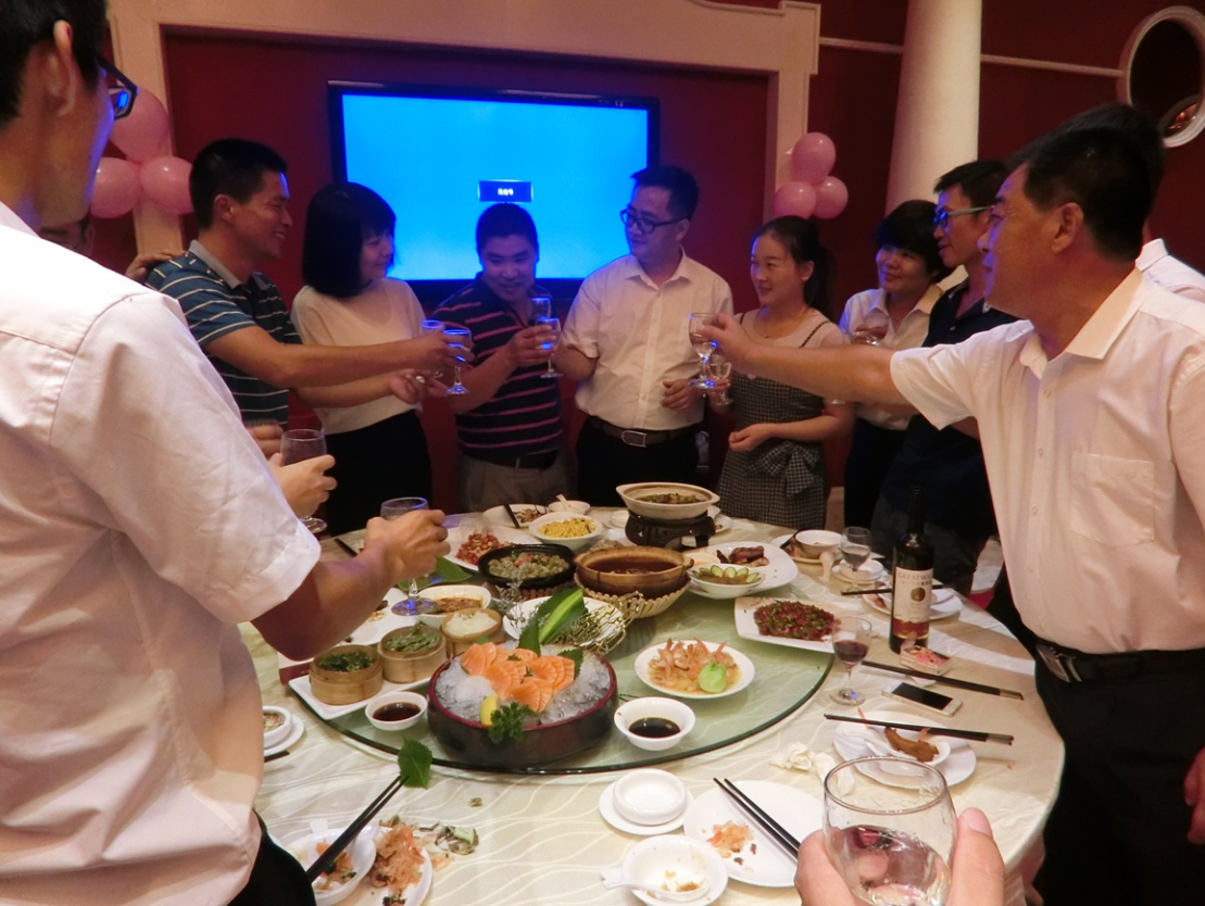 聚餐活动中大家欢声笑语不断,没有了平时紧张的工作状态,大家借此宝贵良机,共话工作和友谊,彼此祝愿节日快乐,家庭幸福,共同祝愿着公司的事业蒸蒸日上、兴旺发达,共同度过了一个温馨欢快的夜晚。