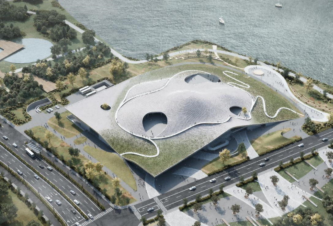 琴台美术馆位于武汉市汉阳区月湖湖畔,毗邻琴台大剧院,与南面梅子山隔湖相望,是武汉市重点文化建筑工程。俯瞰如“起伏山丘”“银色梯田”,日前完成工程质量竣工验收,国内最大规模清水混凝土单体建筑呼之欲出。